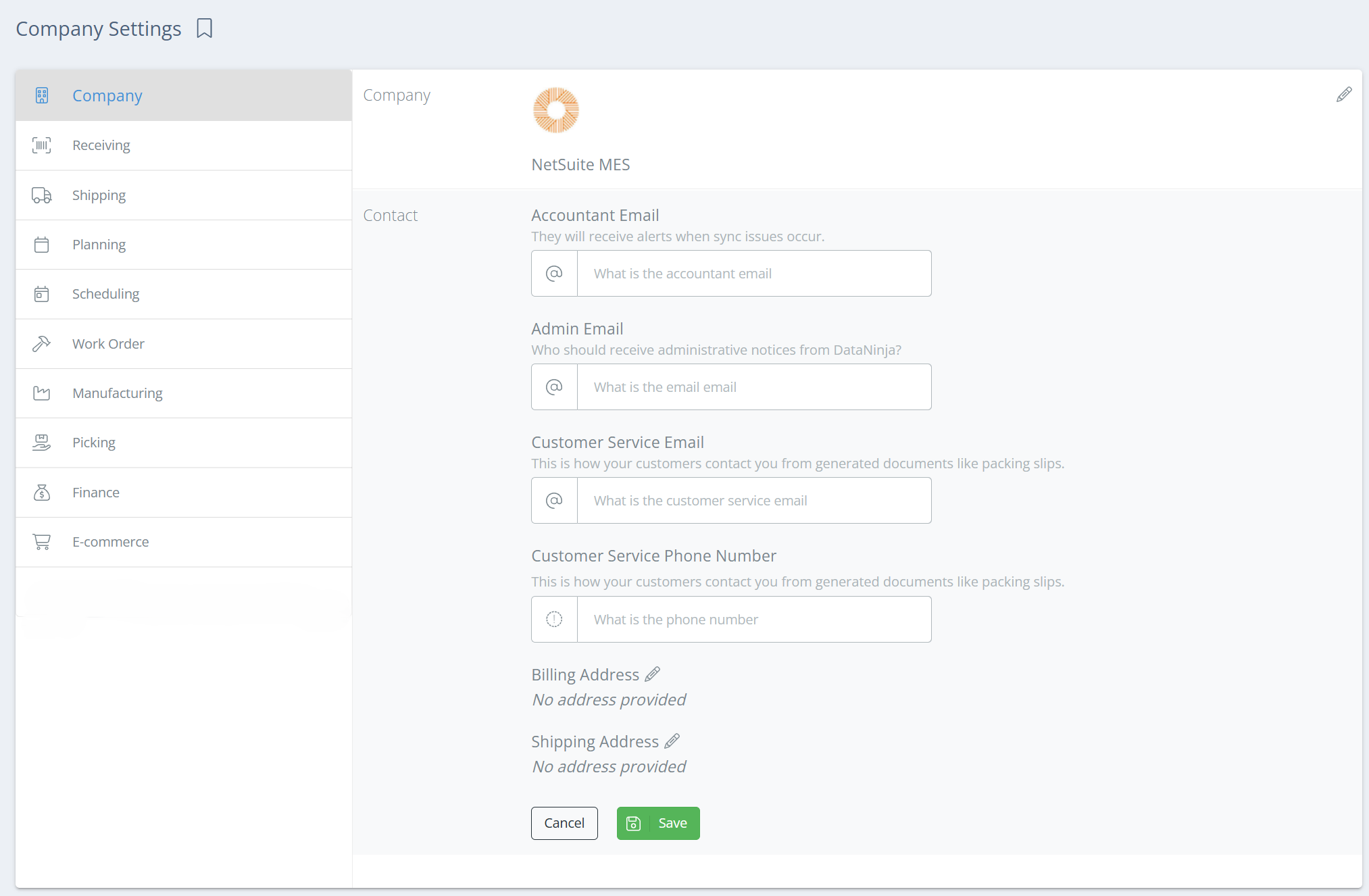 Every company has it's own way of handling inventory and processes. In addition to specific settings on parts, BOMs, orders, etc., DataNinja offers broad settings for receiving, shipping, and more.