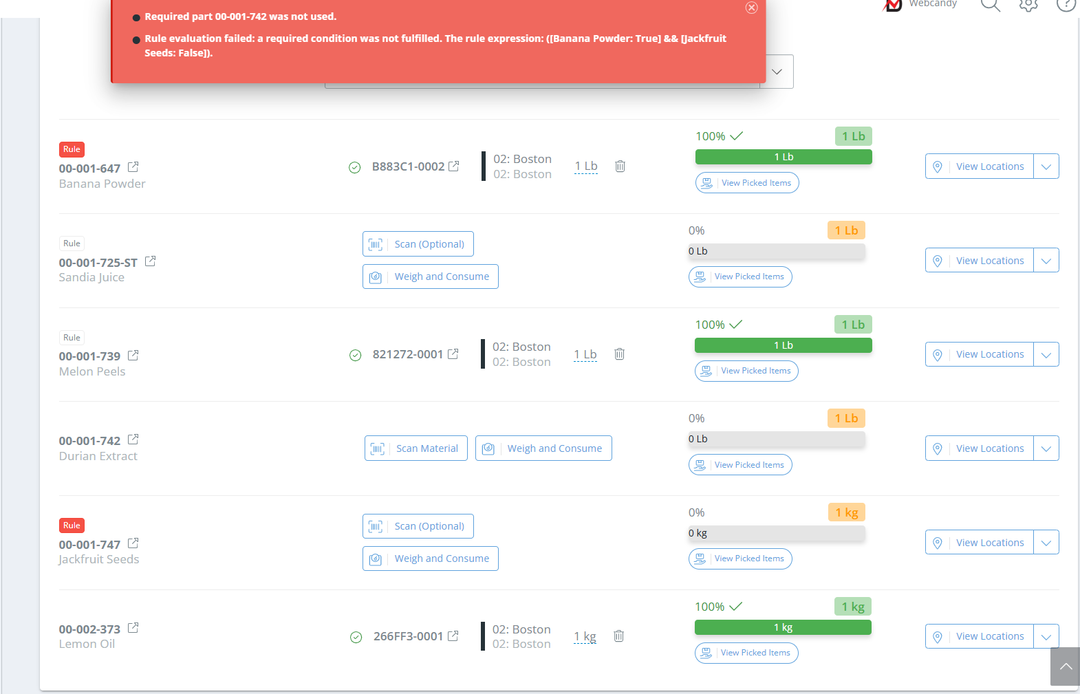 You’ll see a Rule Evaluation Failed message for missing parts that are tied to a rule.