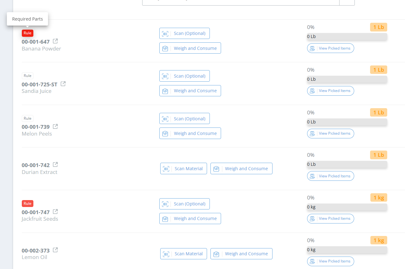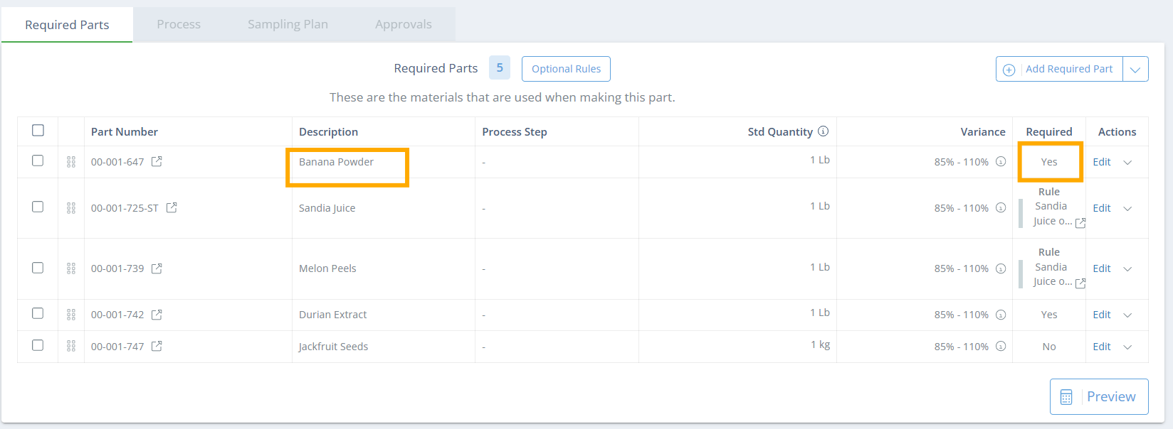 For example, Durian Extract and Lemon Oil may be required parts without rules, while Sandia Juice and Melon Peels are linked to a rule. And in case you're wondering, yes, Allworks the same way as _Required: Yes does (aside from the visual differences as shown below)