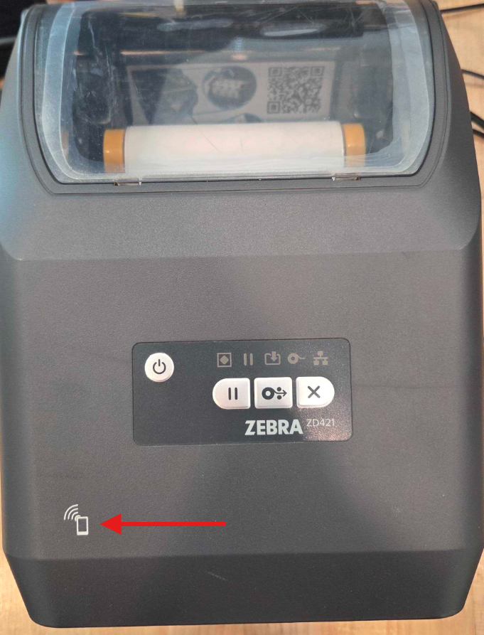 To begin printer setup via tap, have the printer plugged into power and set your mobile device, with the Zebra Printer Setup app open, near the tap icon on the Zebra printer.