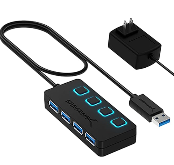 If multiple scales must be connected to the same Hub, a powered USB hub (example below) should be used to connect the scales to the DataNinja Hub so only one USB slot on the DataNinja Hub is used.