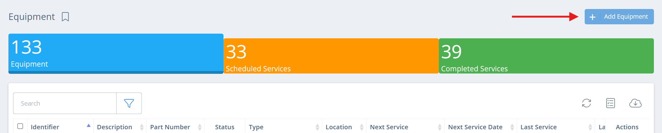 Click on "Add Equipment" in the upper right corner.